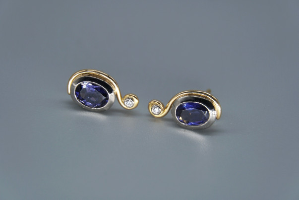 Ohrschmuck - Gold 585, Brillant, Blauer Iolith