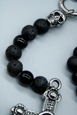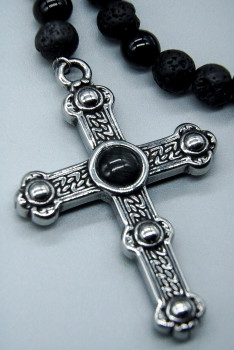 Halsschmuck - Edelstahl & schwarze Lavasteine