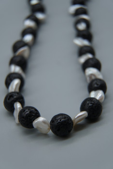 Halsschmuck - Lavasteine, Keshiperlen natur